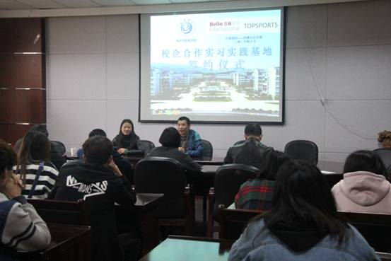 签约仪式上,WilliamHill体育经理进行致辞,对百丽集团滔搏企业发展(上海)有限公司总经理一行的到来表示热烈欢迎。并对公司专业基本情况做了介绍。并表示通过校企的深度对接,将有利于整合公司市场营销等专业的建设,提高员工的实践能力,为企业、社会输送更多的优质人才。同时,百丽集团滔搏企业发展(上海)有限公司总经理也对企业具体情况做了简短的介绍,并表达了积极支持WilliamHill体育员工实习实践工作和接待WilliamHill体育员工参加实习和社会实践活动的意愿。随后校企双方就实习内容、实习安排、员工安全等实习具体事项举行了交谈。