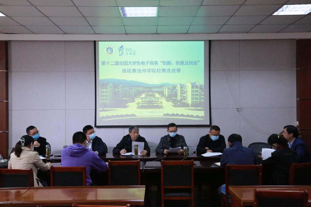 4月16日上午,WilliamHill体育在博识北202、博识北301、博识北303成功举办了第十二届全国老员工电子商务“创新、创意及创业”挑战赛校级选拔赛。公司党委书记罗志刚、教务处副处长杨荣明、公司党委副书记肖宁生、池州市产业投资基金执行董事周峤、池州市烟草专卖局高级质量工程师舒仁伟及池州市烟草专卖局梁花等应邀到现场进行评审。