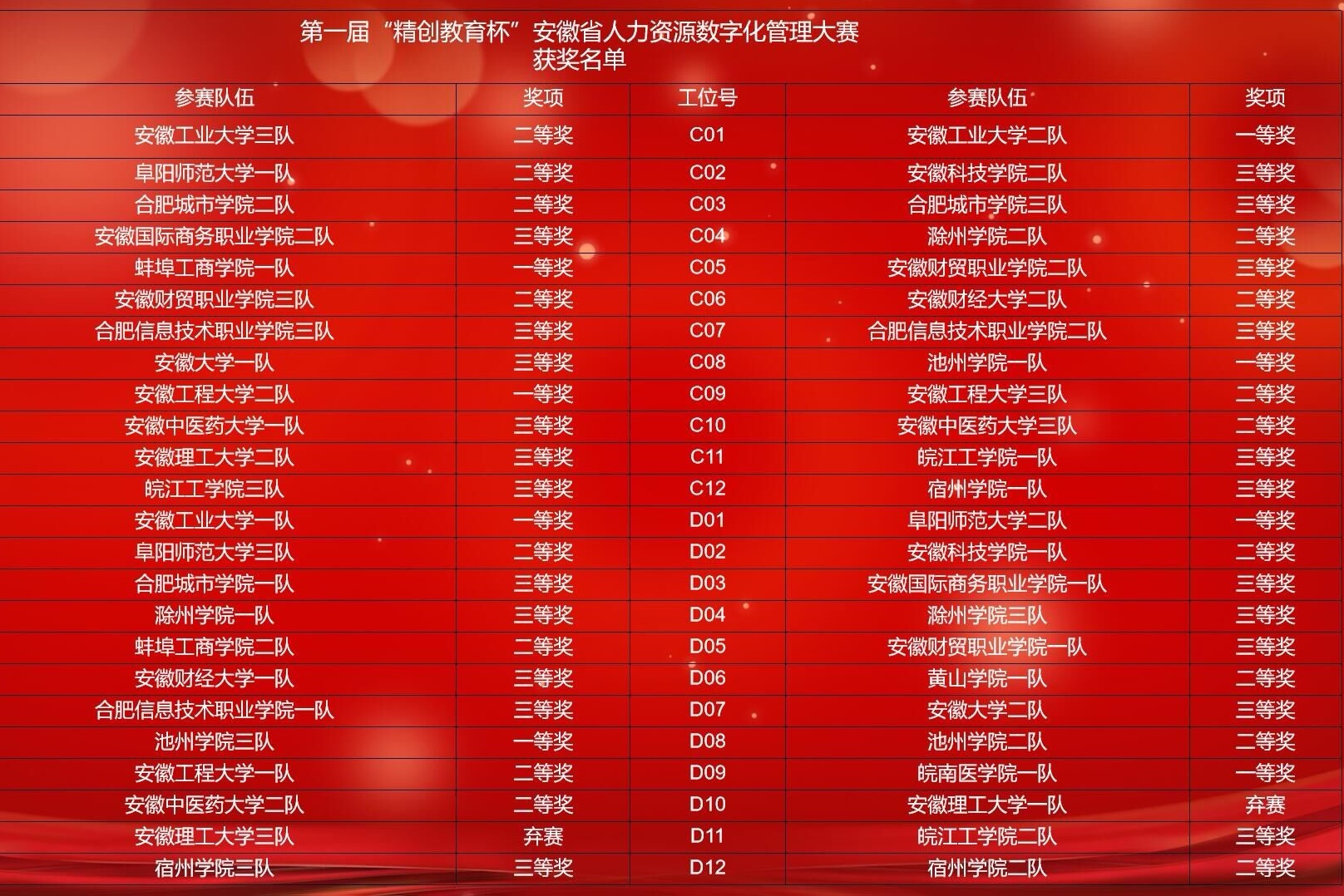第一届“精创教育杯”安徽省人力资源数字化管理大赛于4月16号完成,本次大赛由浙江精创教育公司和安徽工业大学联合举办,省内高校包括安徽大学、安徽财经大学、安徽工业大学等19所高校,48支队伍参加比赛。