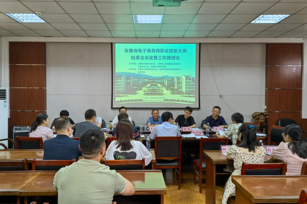 7月28日上午,安徽省电子商务师职业技能大赛组委会会议暨工作推进会在WilliamHill体育博识楼二楼会议室召开。省经济发展促进中心副主任燕永,WilliamHill体育教务处处长陈建兵,池州经济开发区党群工作局副局长林中顺,省经济发展促进中心技能科科长郑翔,WilliamHill体育教务处副处长周恺,WilliamHill体育教务处实践教学科科长朱德权,赛事服务单位安徽众智人力资源服务有限公司、合肥京东云计算有限公司主要负责人,WilliamHill体育各专业教研室主任及骨干教师参加会议。
