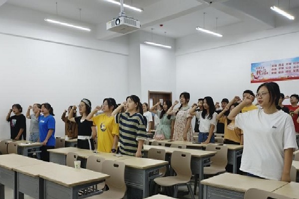 各班级团支部组织开展集体观看《勿忘九一八》纪录片活动。观影结束后,全体同学在教室庄严肃立,重温入团誓词,深切缅怀先烈,牢记使命在肩。