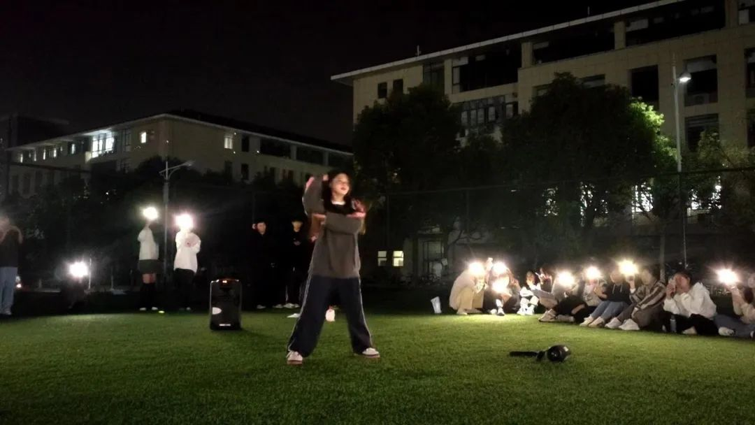 天色渐暗,晚星渐明,同学们在愉快的氛围中有序入场。在主持人有趣的开场白后,音乐节正式开始。精彩的舞蹈和流行的音乐为观众们带来了一场视觉和听觉的双重盛宴。现场吸引了100多名同学前来观看,掌声和欢呼声接连不断。随着节目的进行,观众们或坐或站,纷纷打开并举起手机电筒,自发的跟随节奏晃动,感受音乐,释放自我。