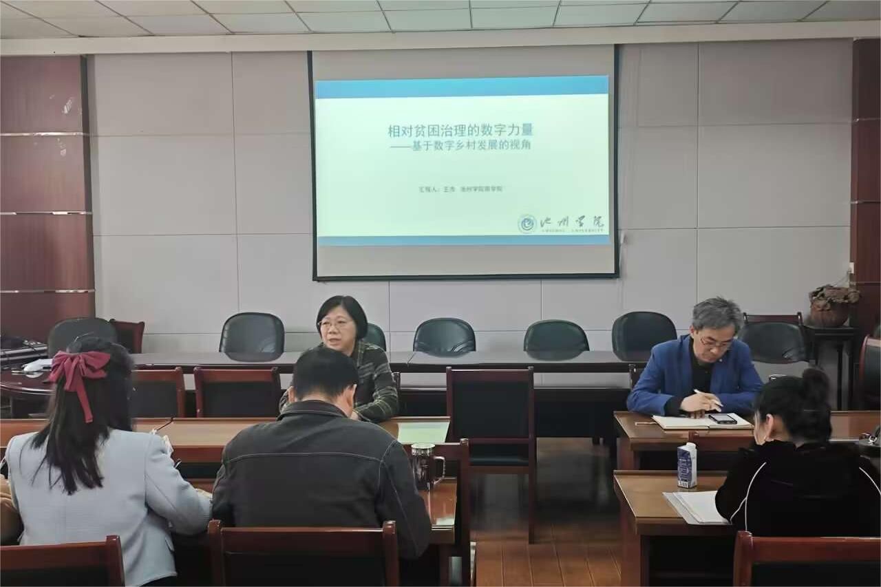 随后,经济学教研室王杰博士开展学术报告,主题为“相对贫困治理的数字力量:基于数字乡村发展视角”。王杰博士从当前农村地区相对贫困的现状出发,结合最新的研究数据和成果,深入剖析了数字乡村发展在相对贫困治理中的重要作用。王杰博士的报告内容丰富、观点新颖,引发了在场教师们的热烈讨论和交流。