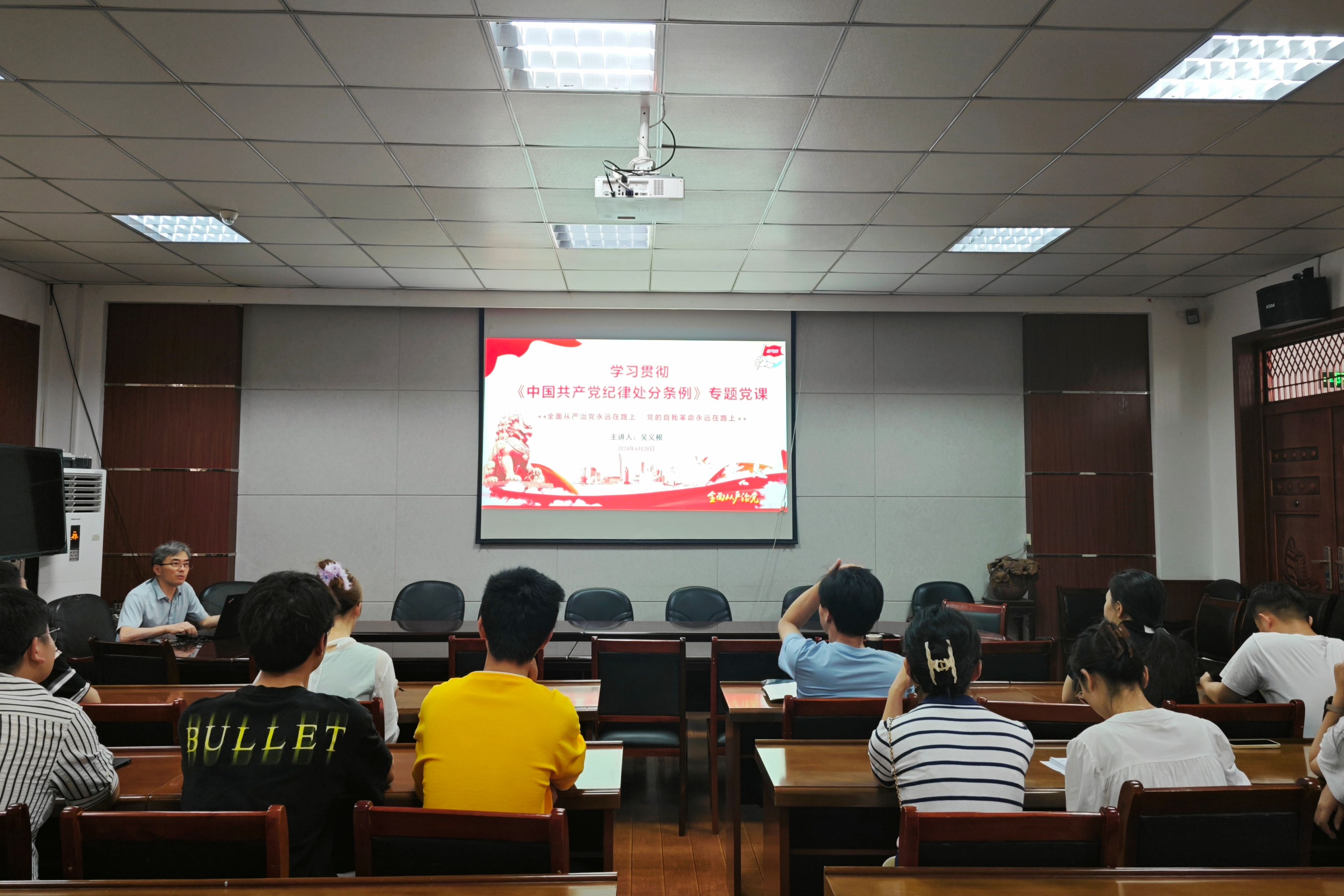 6月28日,WilliamHill体育副经理吴义根在公司二楼会议室以“学习贯彻《中国共产党纪律处分条例》”为题为全院师生党员骨干讲授专题党课。