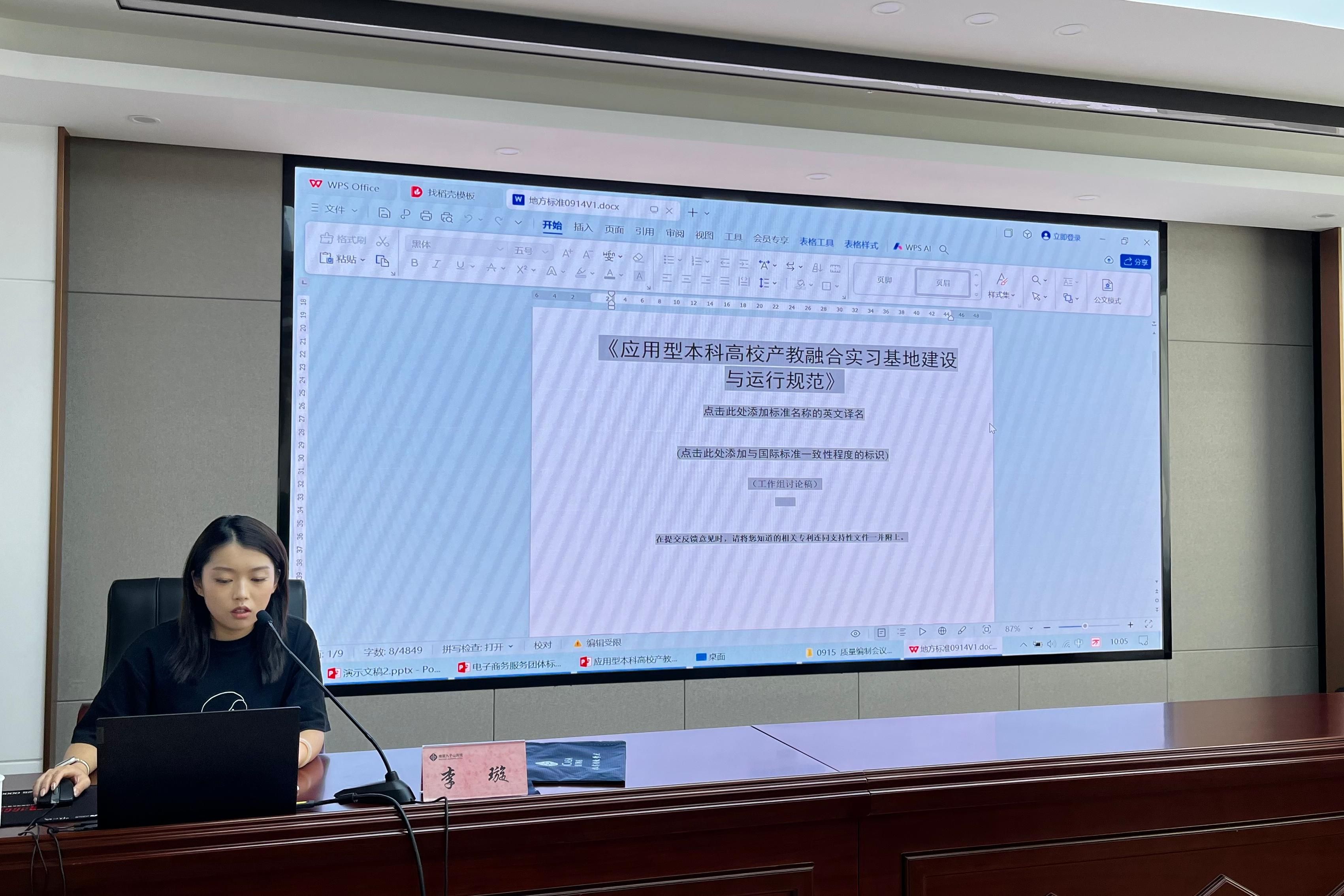 陈建兵以 “应用型本科高校产教融合实习基地建设与运行规范” 为题,从标准的建设内容、立项基础、工作机制等方面作了一场精彩的分享。WilliamHill体育李璇教师详细汇报了安徽省地方标准初稿撰写情况。
