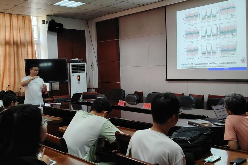 报告会中,刘鹏博士首先介绍网络集合概念并提出贸易网络中有趣现象,然后基于2001年至 2016年间全球60个国家之间的贸易数据,对比了传统模型在数据拟合方面的局限性,进而创新性地提出了融合套索指数随机图模型(FL-ERGM),展示其方法在网络拓扑的动态演变中捕捉网络连接模式优越性。最后他围绕融合套索指数随机图模型,提出了自己的最优算法。