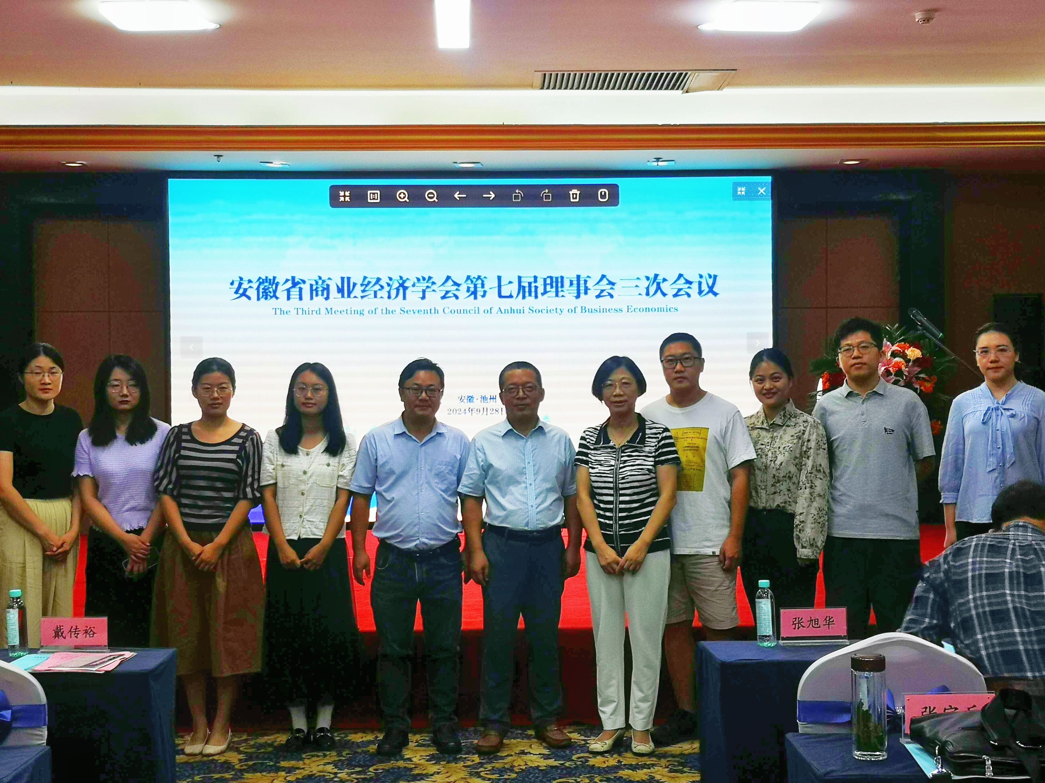 2024年9月28日,安徽省商业经济学会第七届三次会议在安徽池州召开。全体学会理事、相关政府部门负责人、有关商协会及相关媒体等出席会议。会议由原安徽省商务厅副厅长、安徽省商务厅原二级巡视员、安徽省商业经济学会会长戴传裕主持。