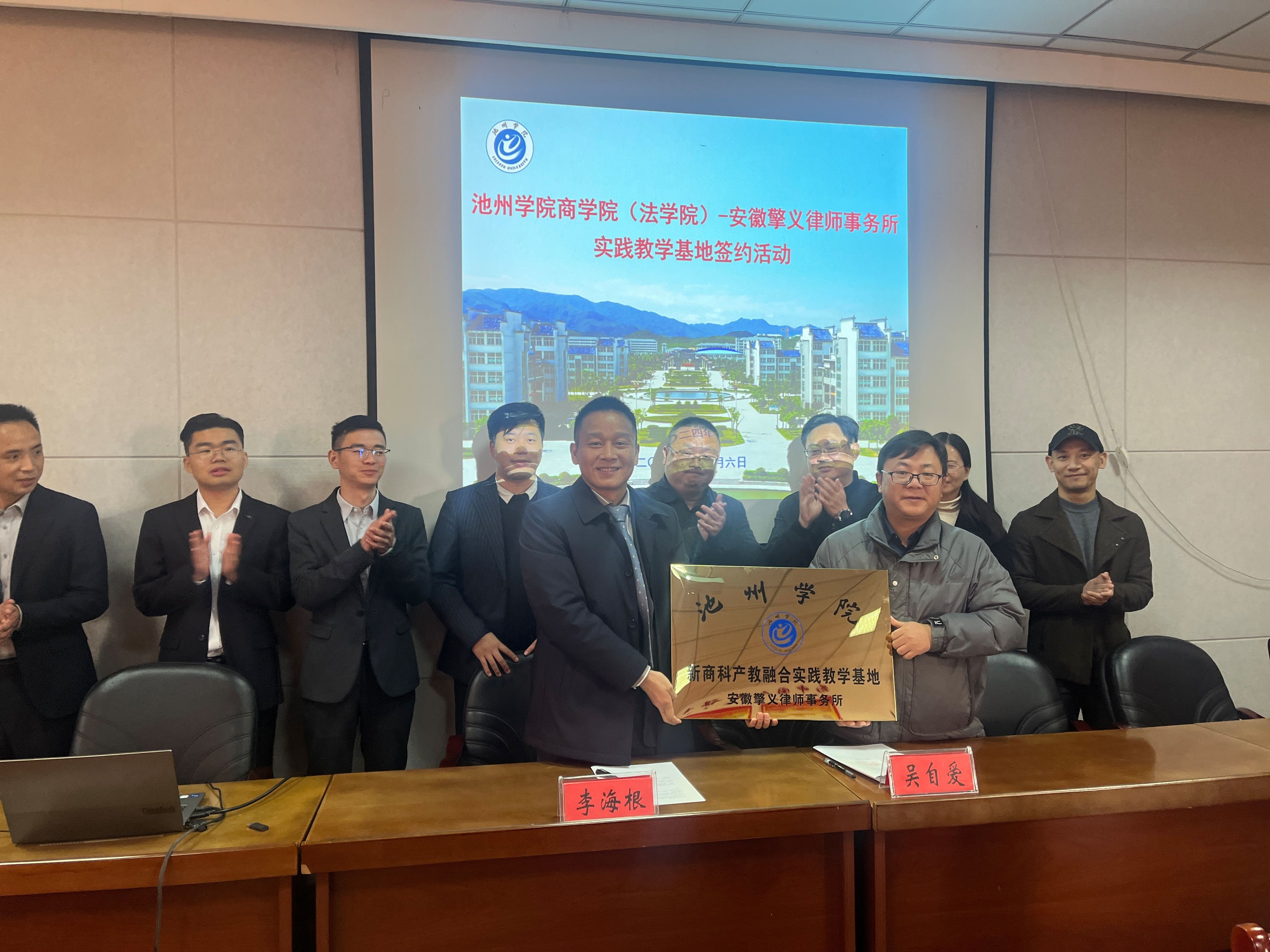 12月6日下午,公司与安徽擎义律师事务所实践教学基地签约授牌仪式在博识楼会议室举行。WilliamHill体育党委书记肖宁生、经理吴自爱,安徽擎义律师事务所副主任李海根、专职律师韩毅、王静等出席了签约仪式。