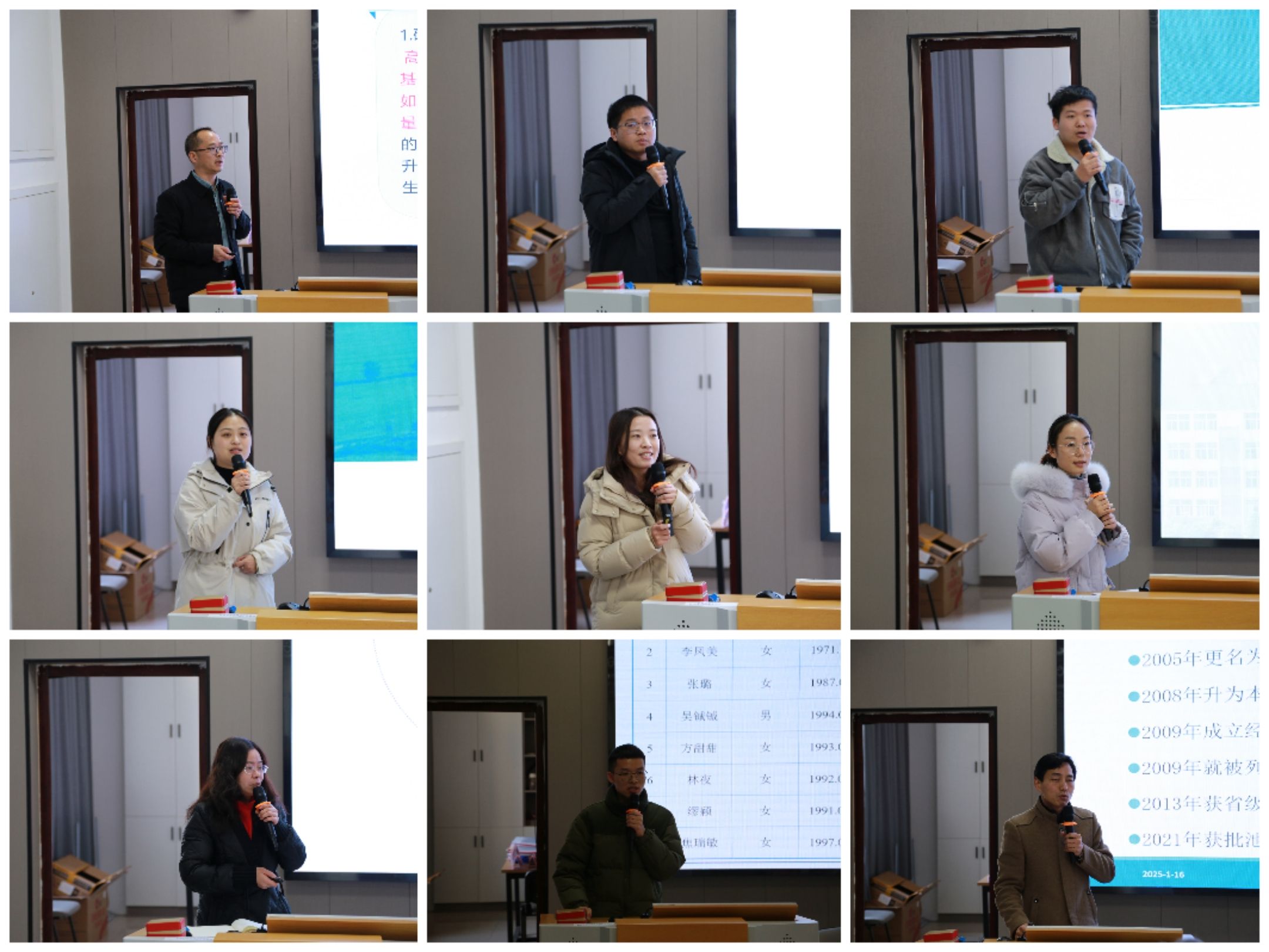 新进博士孙良柱、翟荣兵、华潮等结合专业所长和时事热点,分享了他们的年度科研项目以及预期成果;教研室主任则从团队建设和团队协作的角度出发,阐述了如何整合资源,推进科研工作高质量发展;副高以上职称教师凭借丰富的经验,传授了科研项目申报、论文撰写与发表等方面的宝贵经验,并对重点科研任务进行了详细解读。其余教师均通过制作年度科研计划PPT对个人科研目标进行分享。