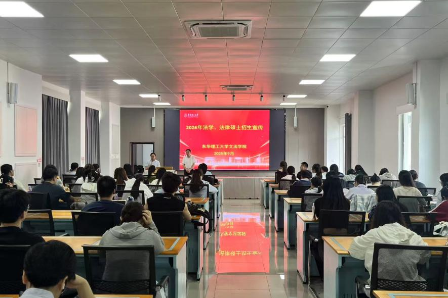 为加强研究生招生宣传,增进公司学子对高水平院校公司产品特色的了解,2025年9月19日下午,东华理工大学文法公司应邀在博识楼北楼401教室举办2026年法学、法律硕士招生专场宣讲会。