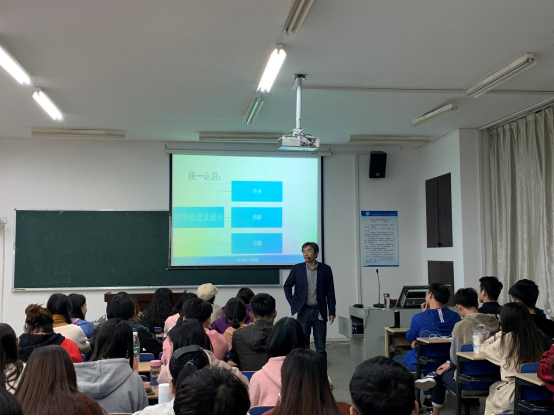 为进一步贯彻全国教育大会精神,落实公司“以生为本,以用为先”的人才培养理念,培养员工科学素养,提高员工的实践能力。经济学教研室于2019年11月11日晚在博识南403教室举行毕业论文写作学术讲座,2016级国际经济与贸易专业所有员工参加此次的学术活动。
