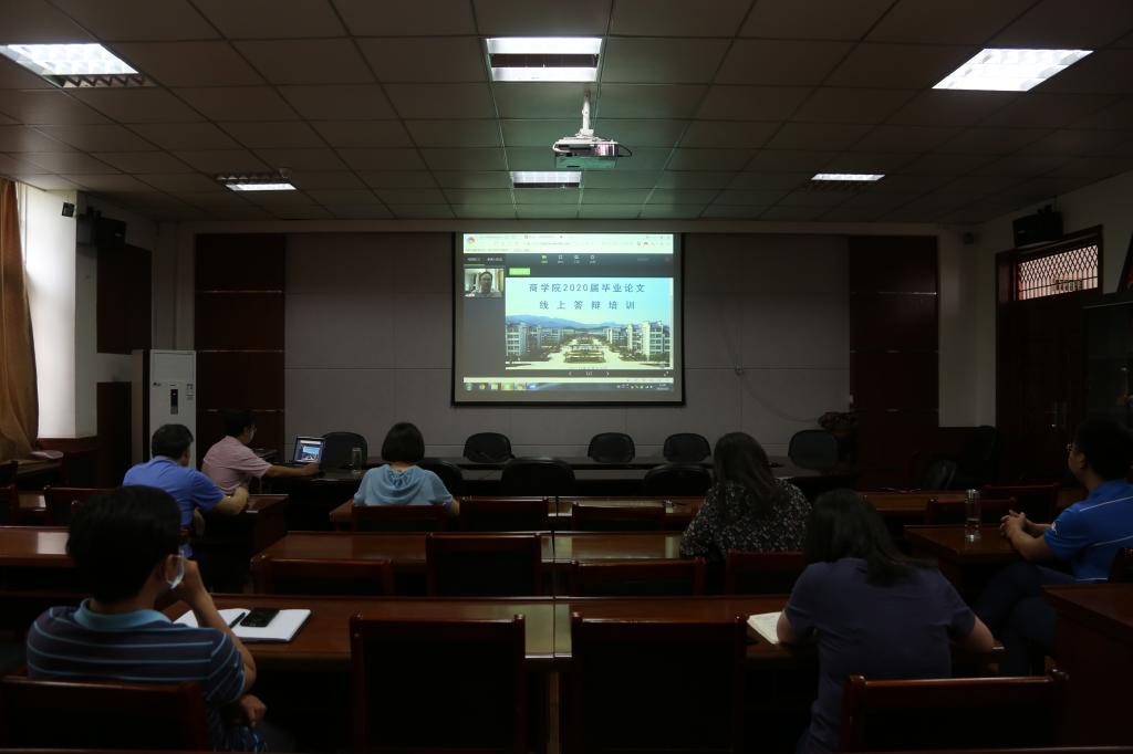 为进一步规范和推动2020届毕业论文线上答辩工作事宜,5月15日中午,WilliamHill体育在会议室召开2020届毕业论文线上答辩专题培训会,围绕毕业论文指导、评阅和答辩工作开展专题培训。WilliamHill体育党委书记罗志刚、经理项桂娥、副经理吴自爱、各教研室主任及WilliamHill体育全体教师参加会议。会议采用现场直播方式进行,部分老师通过观看直播参加本次会议。