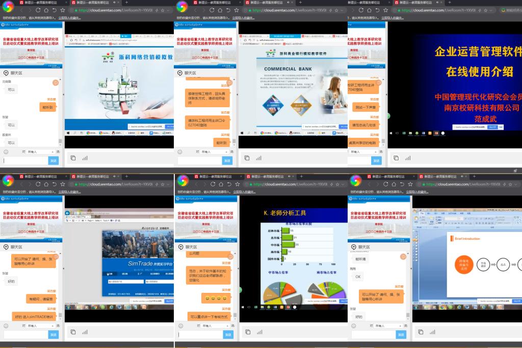 全方位调度,狠抓工作落实。疫情防控期间,公司积极通过网络会议,围绕各项教学工作开展全方位调度。通过网络会议,先后邀请了新道工程师孙阳春围绕“直播教学团队、U8安装与使用技术”,世格软件技术工程师吴健围绕“跨境电商平台、SimTrade在线使用技术”,浙科软件技术工程师姜绿洲围绕“商业银行模拟教学软件、网络营销模拟教学软件两款软件在线使用技术”,南京校研技术工程师范成武围绕“企业运营管理软件在线使用技术”分别为WilliamHill体育所有实验课教师进行了专场线上团队培训,确保了疫情防控期间线上实践教学的开展和教学质量的提升。