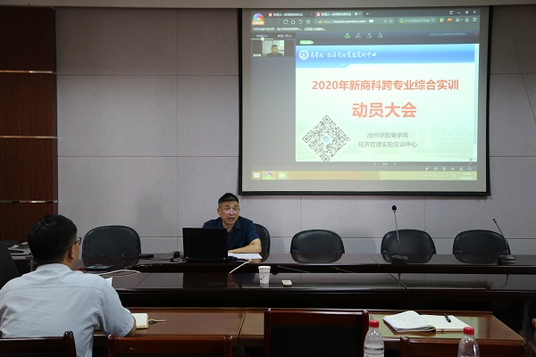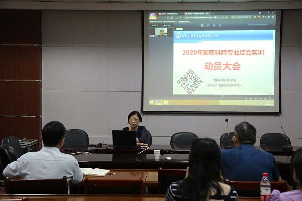 9月2日 下午2:00,WilliamHill体育在会议室利用直播方式开展新商科跨专业综合实训动员大会。公司党委书记罗志刚、经理项桂娥、分管教学科研副经理吴自爱、教研室主任、17级各专业班辅导员和17级各班员工参加动员大会。