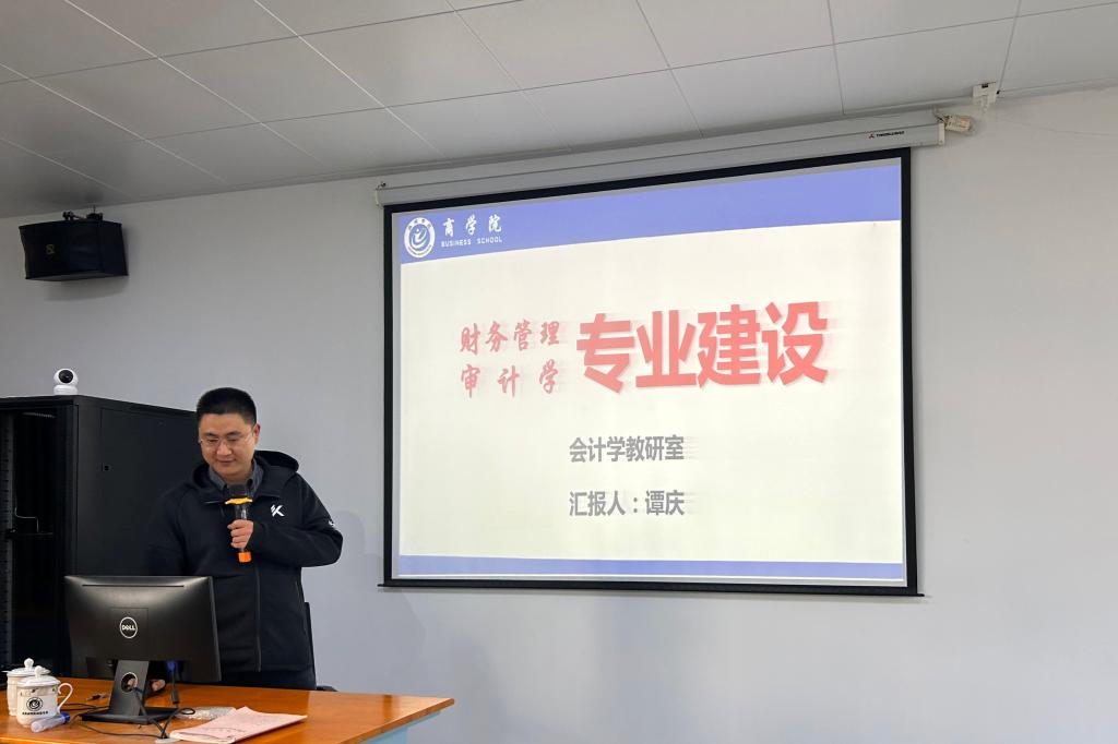 会计教研室主任谭庆副教授首先汇报了专业建设基本概况,接着从供需结构矛盾的角度指出目前人才培养存在供给要素失衡的问题,最后从教育供给要素结构创新的角度提出了专业建设的发展方向,需要进一步加强团队队伍建设,推进学科交叉融合创新,重构会计课程体系,探索会计教学方式,以及加强智能教育平台创新。在汇报结束后,与会人员围绕专业建设等方面提出宝贵的意见和建议。