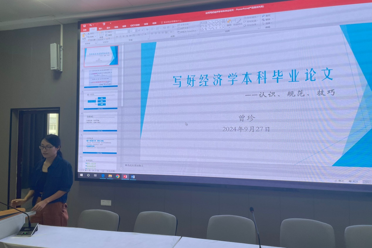 为了迎评促建提质量,早准备、早规划、早布局2025届毕业论文工作,9月27日,经济学教研室主任曾珍为国际经济与贸易专业毕业班员工开展了毕业论文专题讲座。