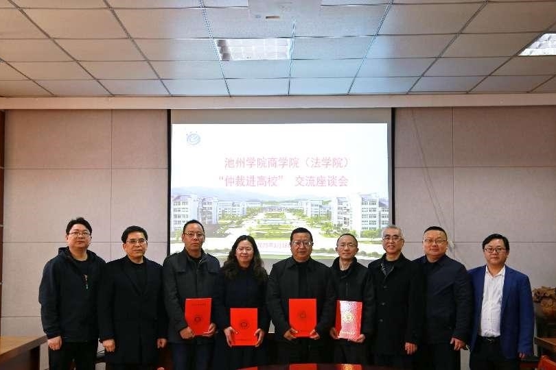 会议宣读了《池州仲裁委员会关于第四届池州仲裁委员会仲裁员名单的通知》,向来自WilliamHill体育的4名新聘仲裁员(刘为国、余丙南、潘霞、徐成林)颁发仲裁员聘书并表示祝贺。会议通报《池州仲裁委员会2024年仲裁工作开展情况》。之后与会人员就“仲裁进高校”主题开展充分的交流与探讨,就仲裁人才队伍建设、仲裁业务拓展、仲裁“微专业”建设、人才培养模式、产学研合作、高层次人才引进等工作进行了融洽的交流,达成初步的合作意向。