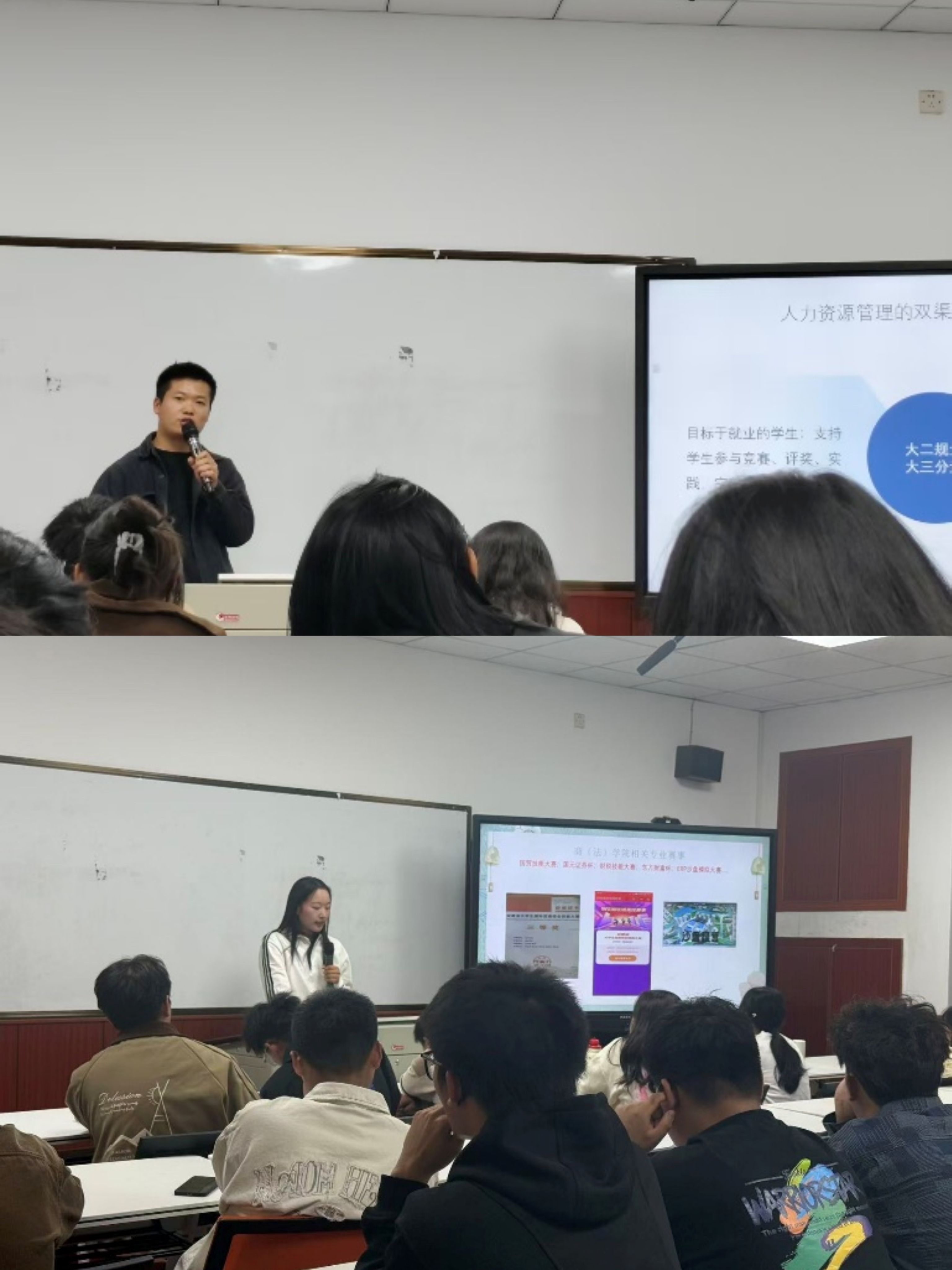 作为学姐学长代表,陆文静学姐做了专题分享。她结合自己在知名企业人力资源部门的丰富实践经验,生动阐述了大学期间所学的专业知识如何在实际工作中得到应用与升华。她以亲身经历告诉同学们,扎实的理论学习、主动的实践探索和积极的沟通协作是走向成功的关键。