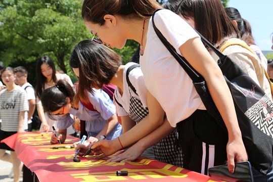 期末考试临近,为树立党员和公司员工干部的形象,发挥先锋模范作用,6月21日上午,在公司党总支领导下,WilliamHill体育员工党员、入党积极分子、公司员工干部在博识楼前参加了以“诚信考试”为主题的主题党日活动。