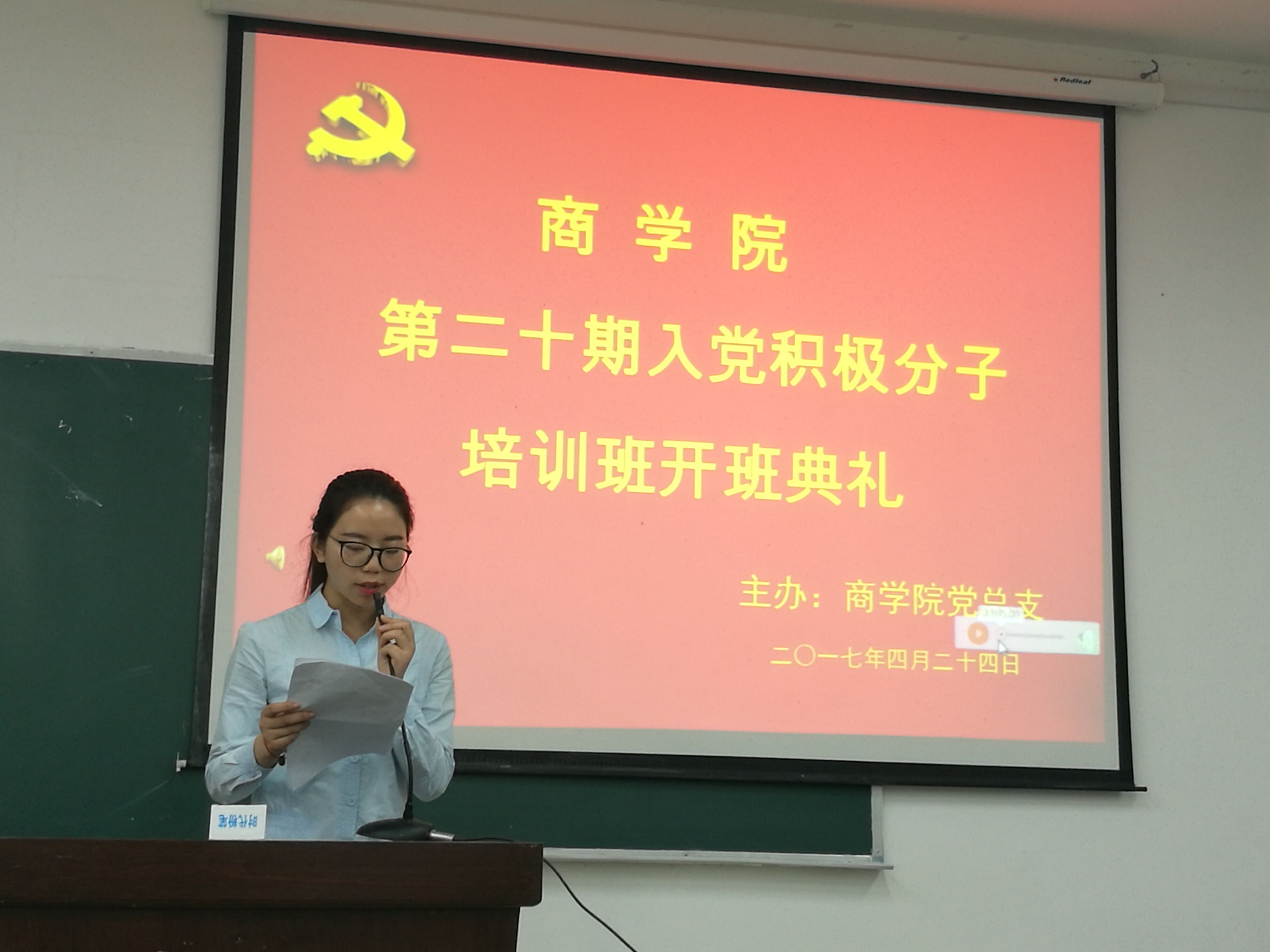 4月24日晚,WilliamHill体育第二十期入党积极分子培训班开班典礼在博识南403教室隆重举行,公司党总支委员、团总支负责人、员工党支部书记、专职辅导员及90名学员参加了开班典礼。开班典礼由项桂娥经理主持。
