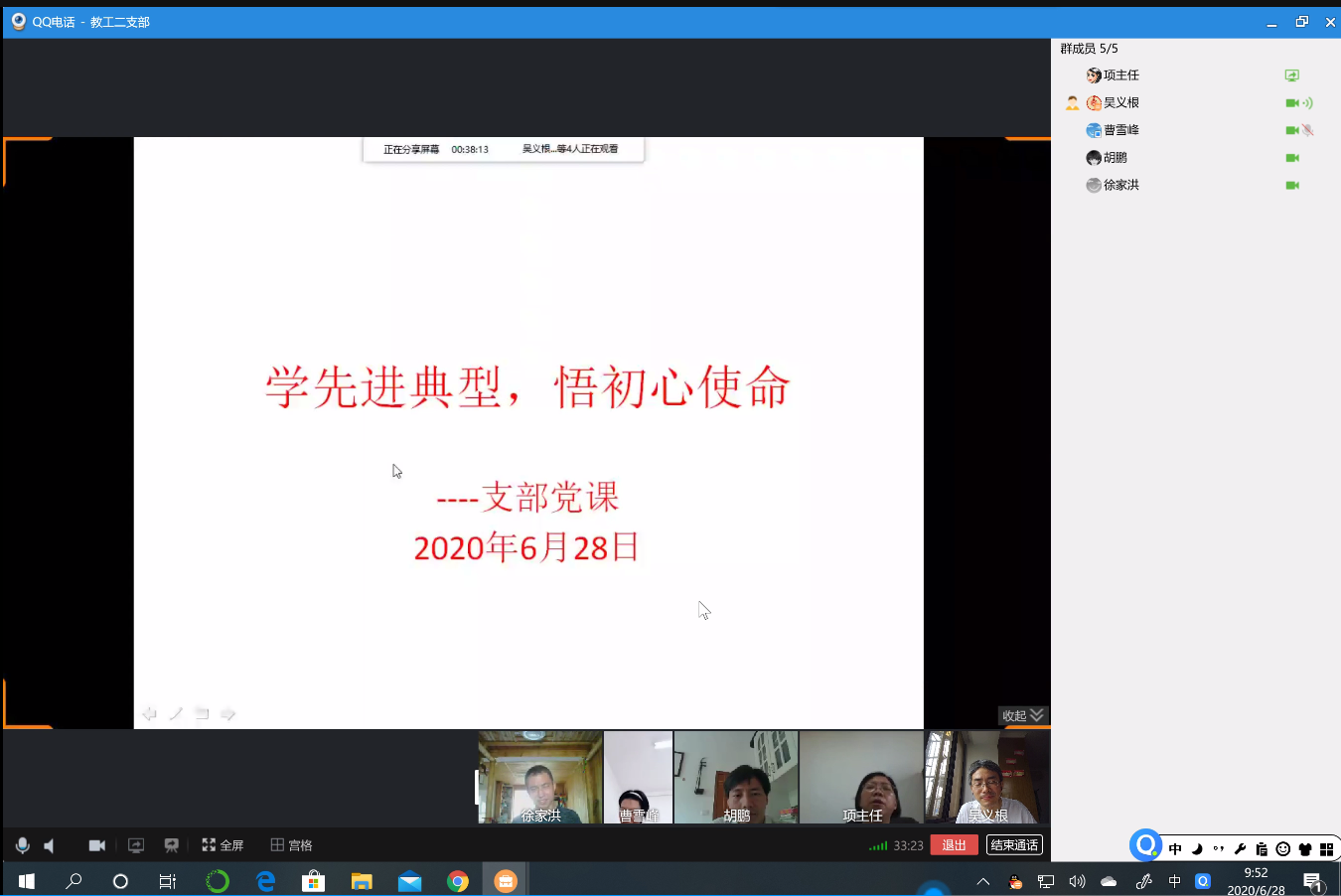 为贯彻落实党中央关于常态化疫情防控的决策部署,充分发挥高校基层党组织战斗堡垒作用和师生党员先锋模范作用,让党旗始终高高飘扬在疫情防控、返校复学和事业发展的全过程。WilliamHill体育教工二支部于6月28日以“迎党的生日、讲战疫故事、悟初心使命”为主要内容召开了组织生活会,并开展了以“学习先进典型,悟初心使命”为题的微党课讲座。首先,经理项桂娥同志在组织生活会上率先讲述了“伟大英雄”和“平民英雄”的抗疫故事,并结合自身的工作实际畅谈了切身感悟,同时勉励大家在各自岗位上为抗疫做出自己的贡献。支部其他成员也分享了自己身边抗疫的所见所闻,畅谈自己的切身体会,并结合自身实际,明确了下一步努力的方向,大家畅所欲言。