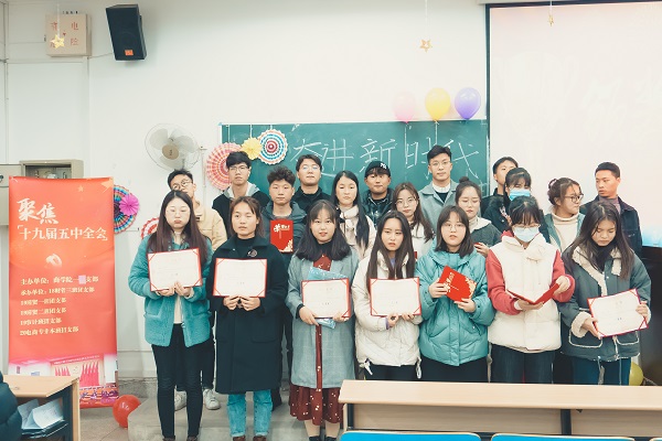 为深入学习宣传贯彻十九届五中全会精神,引导广大团员青年全面理解党和国家事业取得的非凡成就,激发奋斗精神,更好地将个人理想融入全面建设社会主义现代化国家新征程的大局之中。11月24日下午,在WilliamHill体育员工第一党支部的指导下,18财管3班团支部、19国贸1班团支部、19国贸2班团支部、19审计学班团支部、20电商专升本班团支部联合开展“奋进新时代,争做好青年”主题团日活动。