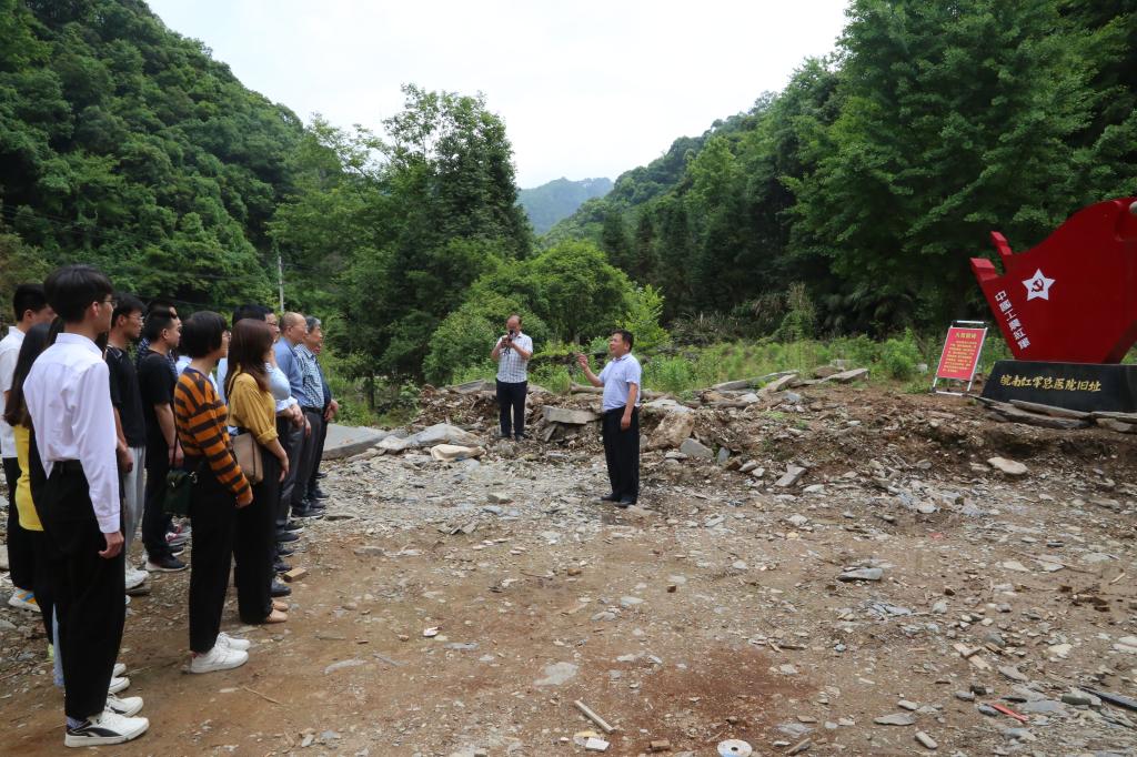 上午10:30,WilliamHill体育教工第一党支部来到石台县新棚村的皖南红军总医院旧址。石台县人大常委会副主任、党组成员,七都镇新棚村党支部第一书记、驻村扶贫工作队队长江洪详细讲解了皖南红军总医院光荣的革命历史,介绍了新棚村在一九四九年前、社会主义建设时期及改革开放以后的发展变化,特别是在脱贫攻坚过程中取得的辉煌成绩。江书记的讲解让现场的人员非常感动和深受教育。