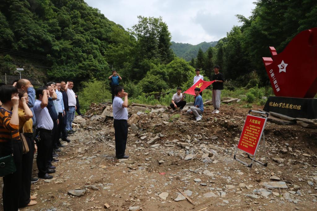 随后, WilliamHill体育教工第一党支部、池州产业投资集团有限公司产业基金(工投)公司党支部在江洪书记的带领下,在皖南红军总医院旧址,面对鲜艳的党旗,全体党员高擎右拳,庄严宣誓,重温入党誓词,追根溯源忆初心,激发动力强使命。