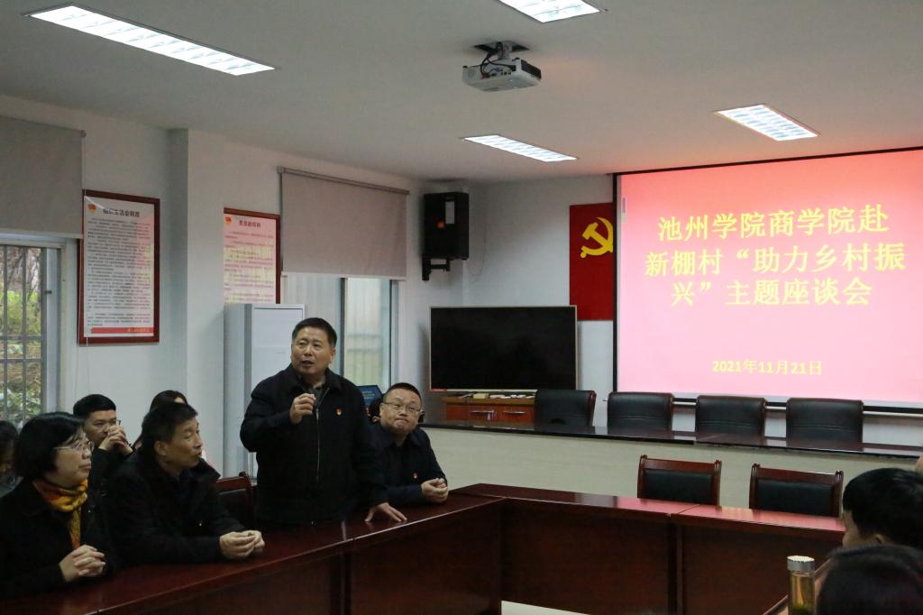 随后,全体人员前往石台县新棚村部,开展了“助力乡村振兴”主题座谈会。与会专家建议新棚村要依托生态资源和红色资源优势,重点发展生态有机茶、健康养生、茶园观光、红色教育等为一体的乡村振兴道路。