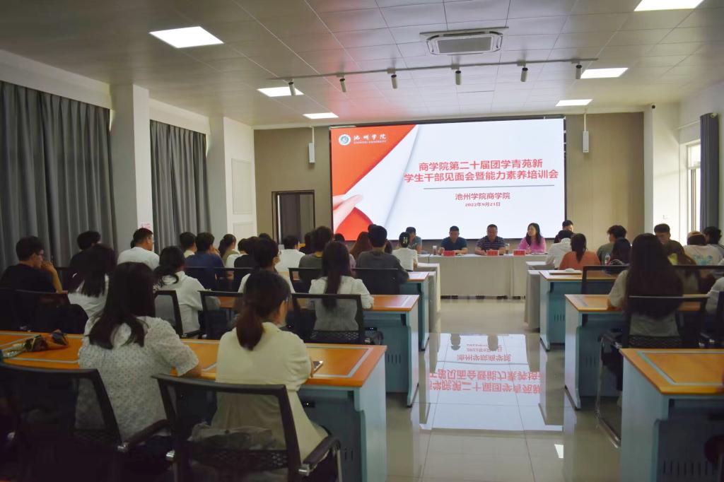章健就2021-2022学年公司团委工作及新学年工作重点做了汇报。20级市场营销1班吴云龙同学代表全体团学干部作了表态发言。