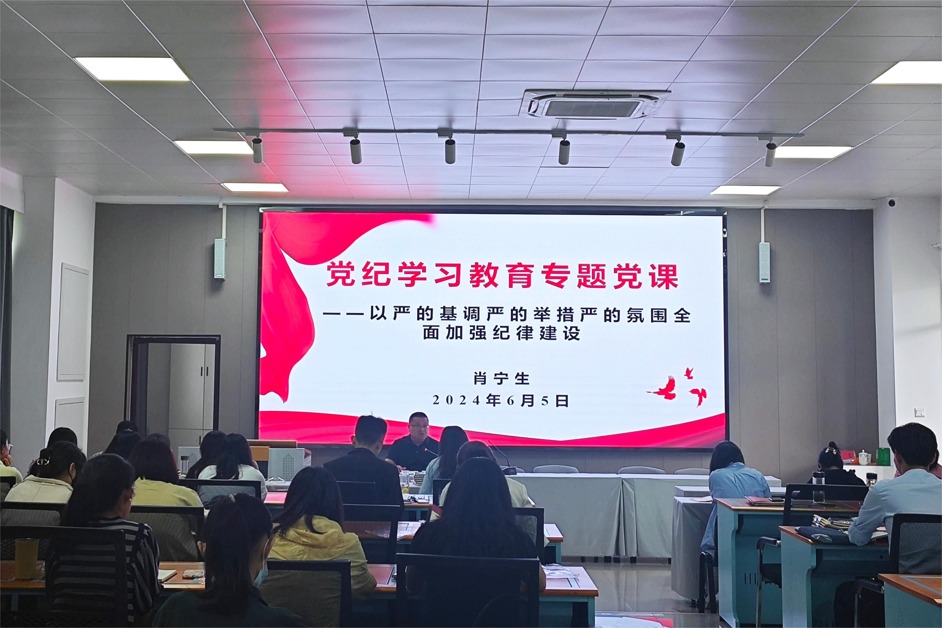 6月5日,公司党委书记肖宁生以“以严的基调严的举措严的氛围全面加强纪律建设”为题,在博识北401会议室为全体师生党员讲授党纪学习教育专题党课。
