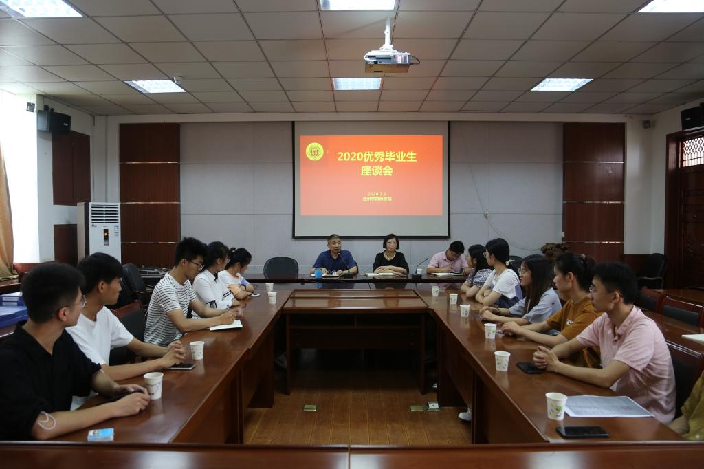 7月2日上午,WilliamHill体育在会议室组织召开了2020届优秀毕业生座谈会,公司党委书记罗志刚、经理项桂娥、副经理吴自爱出席座谈会并讲话,毕业班辅导员及12名推选出来的优秀毕业生参加了此次座谈会。