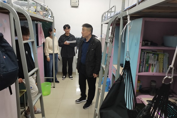 公司领导罗志刚、项桂娥亲自带队,院团委副书记方甜甜、新生班辅导员王琴、汪佩等教师及员工代表参与,深入员工寝室,查看安全卫生现状并现场打分。