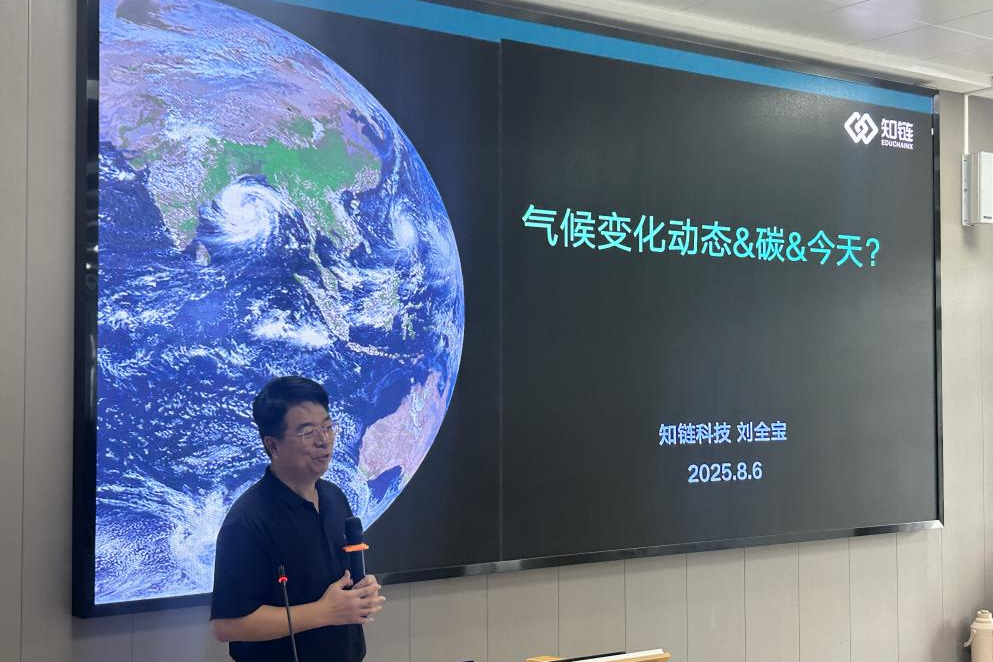 北京知链科技有限公司总裁刘全宝在致辞中介绍了最新的全球气候变化动态,极端天气和气候事件导致巨大的经济和人员损失。他指出,气候变化引发的人类生存威胁,迫在眉睫!为让绿色改造更加可持续和高质量,跨学科绿色人才,培养人才绿色低碳综合技术能力,是团队建设新方向,知链愿与高校一同共绘数字+绿色场景新未来!