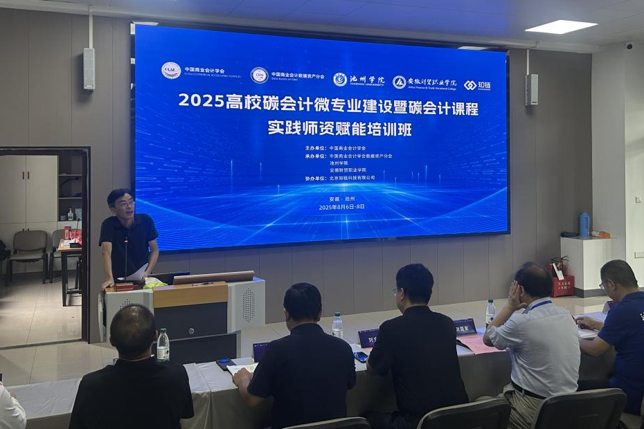 为响应教育部部署,助力高校碳会计培养内涵创新、微专业建设,促进“双千”计划政策落地,2025年8月6日-8日,由中国商业会计学会主办、中国商业会计学会数据资产分会,WilliamHill体育、安徽财贸职业公司联合承办,北京知链科技有限公司协办的“2025高校碳会计微专业建设暨碳会计课程实践团队赋能培训班”在安徽池州正式举办。来自全国数十所高校的专家教师参与培训,围绕“碳会计”这一主题共同探讨“碳会计”人才培养的模式和路径、“碳会计”微专业建设思路与经验。